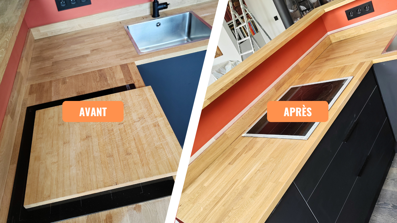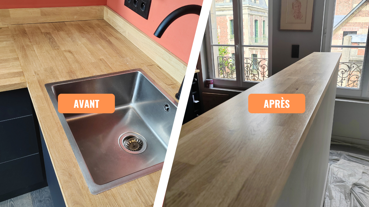 Je propose un service complet pour redonner vie à vos plans de travail en bois.