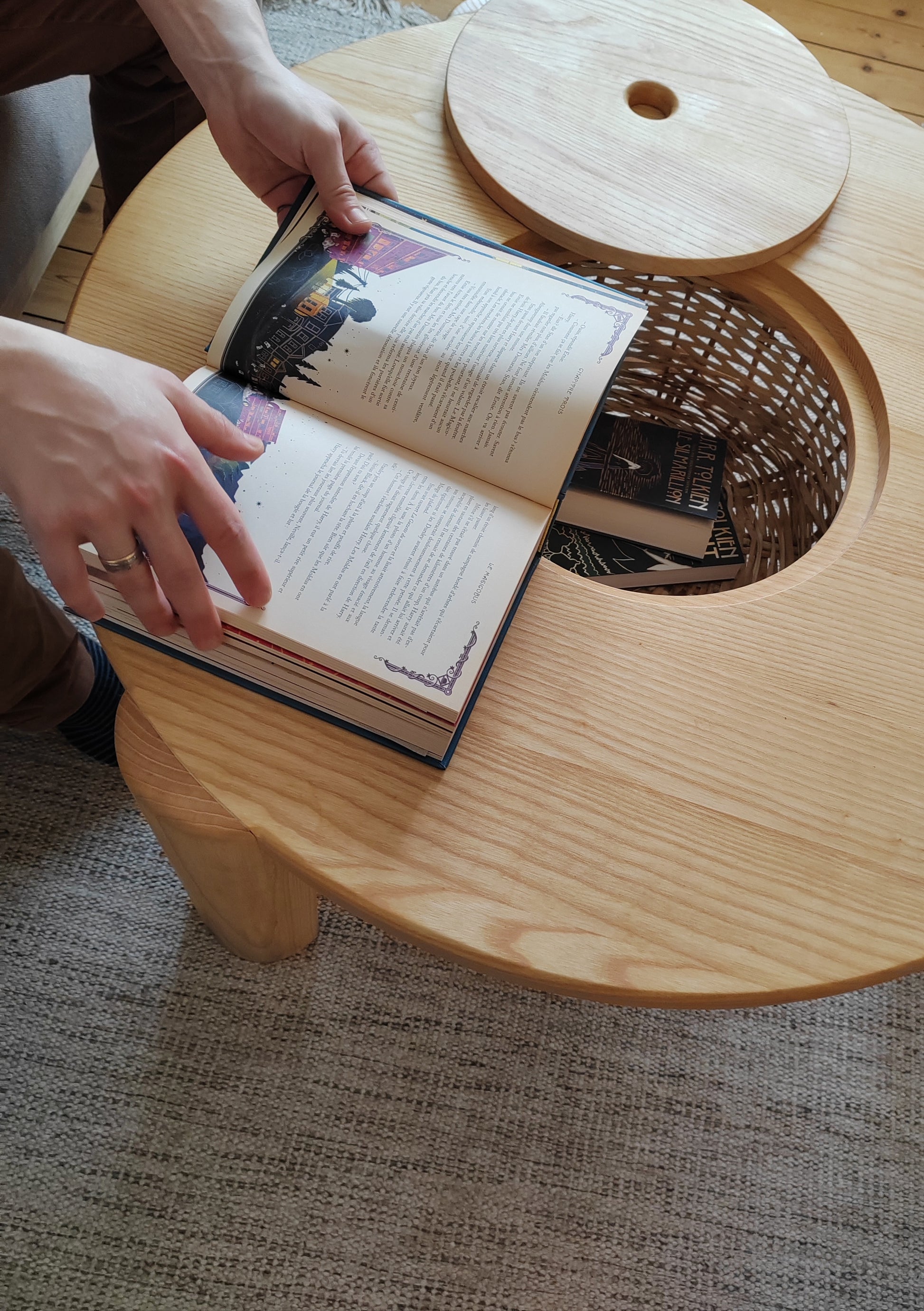 Découvrez "Bone Table", une table basse en frêne massif, à la fois esthétique et fonctionnelle, pensée pour s’intégrer harmonieusement dans votre intérieur. Conçue avec passion et soin, cette pièce unique associe un design épuré à une utilité ingénieuse, grâce à son panier en vannerie intégré, réalisé à la main.