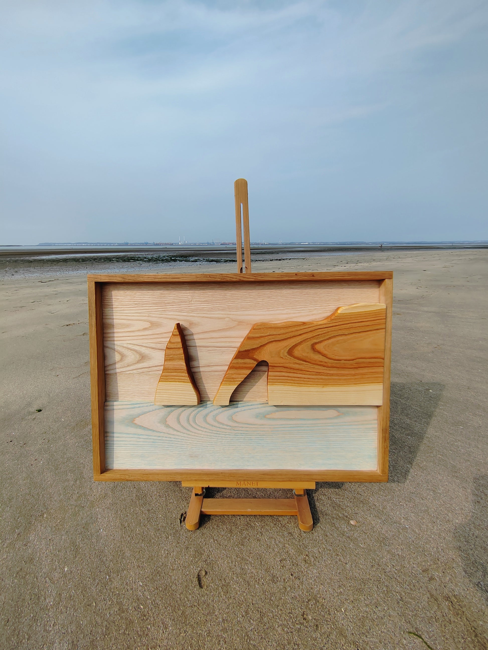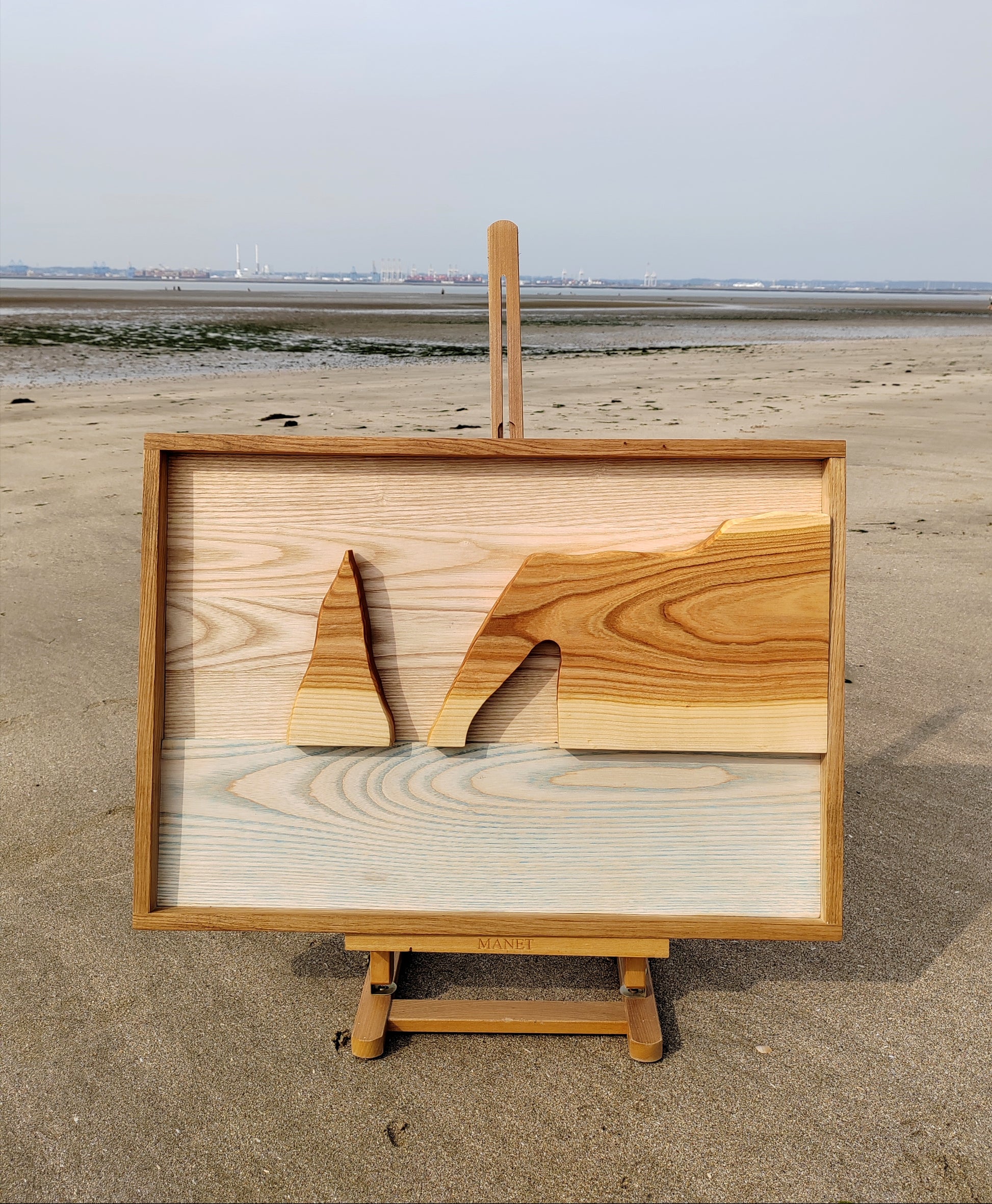 Ce tableau d'Etretat fait partie de la nouvelle collection de tableaux en bois réalisés à la main par Enora Billard sur le thème de la Normandie.