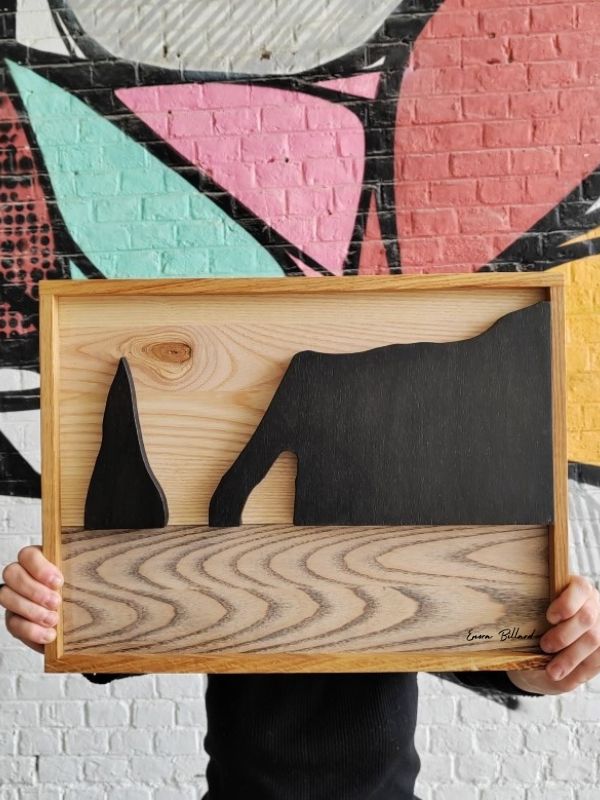 Ce tableau des falaises D'Etretat fait partie de la nouvelle collection de tableaux en bois noir et blanc réalisés à la main par Enora Billard sur le thème de la Normandie.