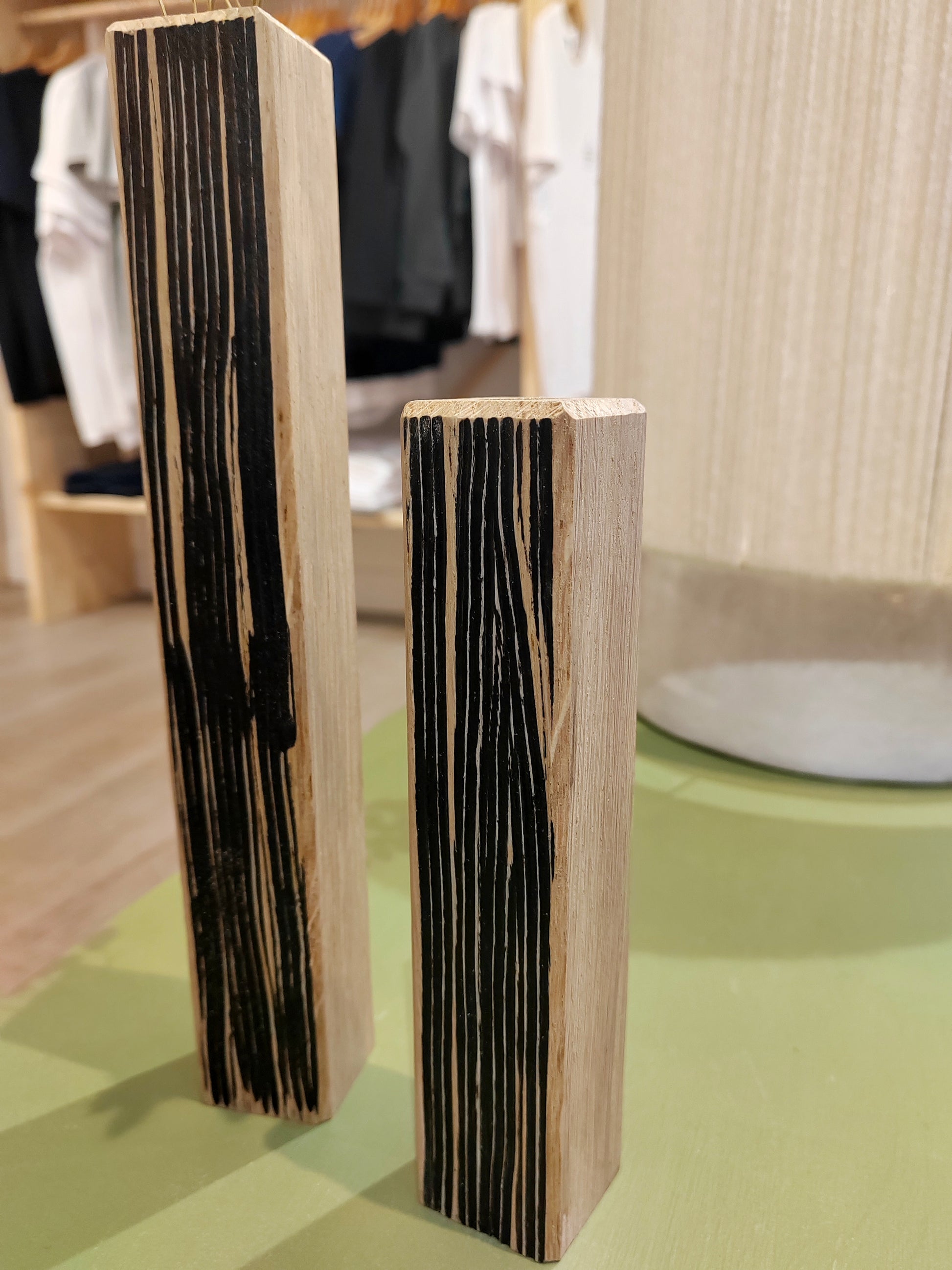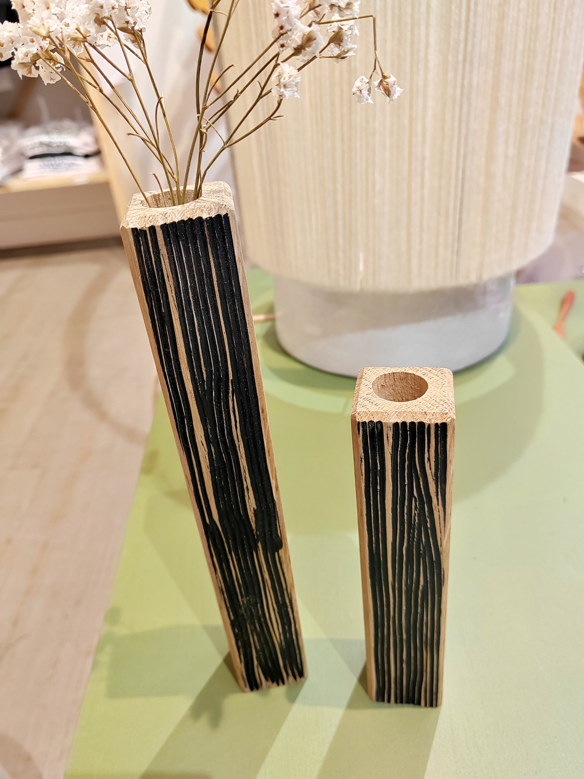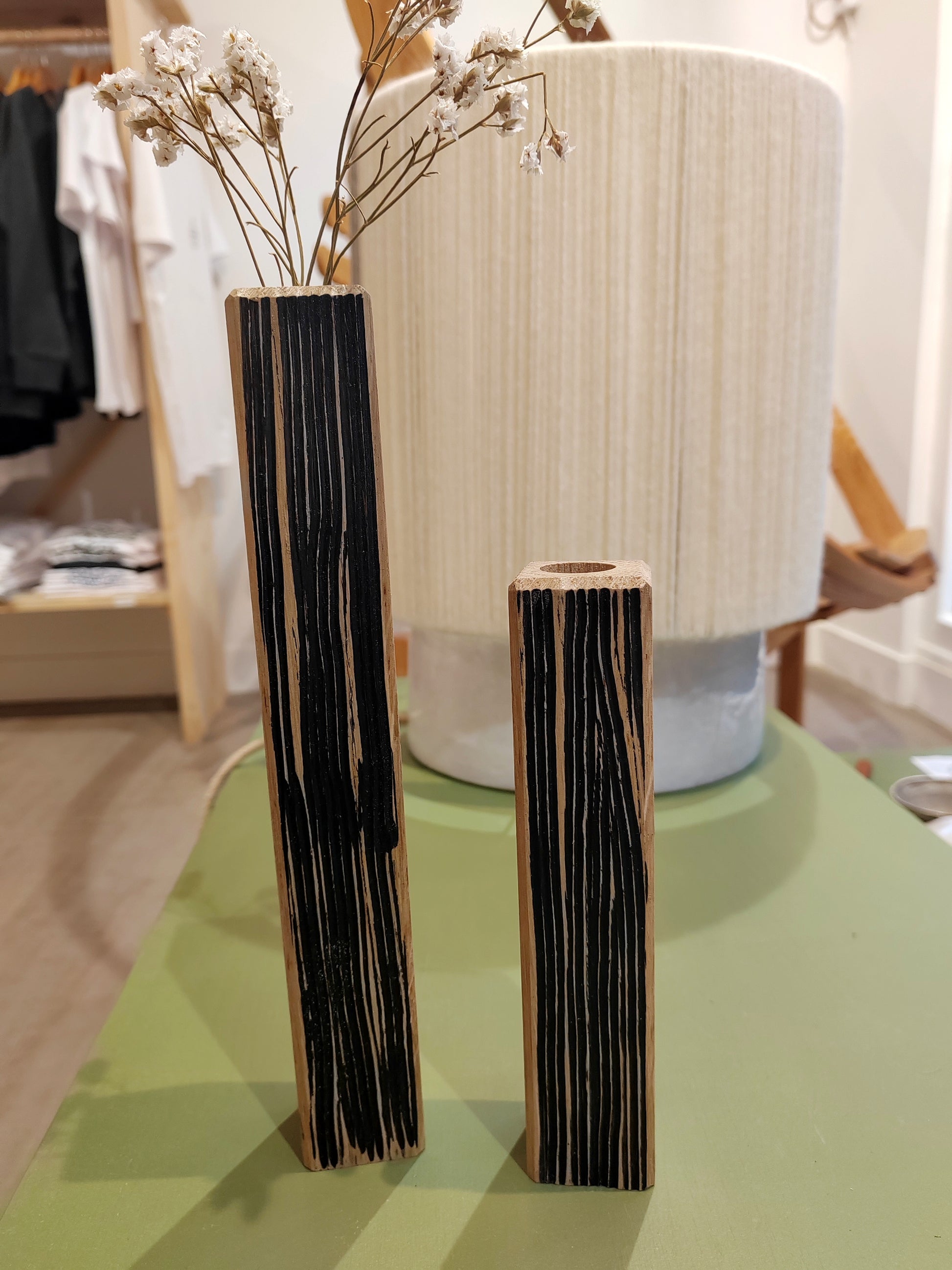 Sculpturaux et minimalistes, ces soliflores en chêne massif incarnent l’esprit de la collection HOMA, où la matière devient le sujet.