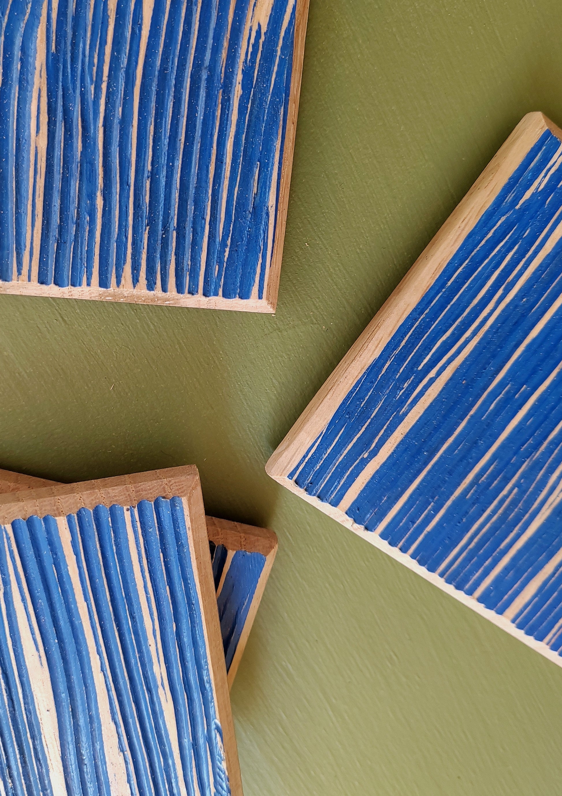 Leur texture délicate souligne la fibre du chêne sous une teinte marine élégante et apaisante.